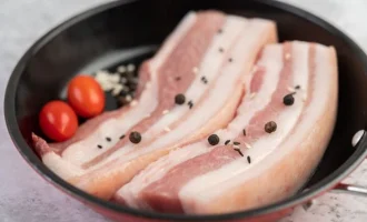 - Lavare il fegato, rimuovere i dotti biliari, tagliare in due parti, salare e pepare.